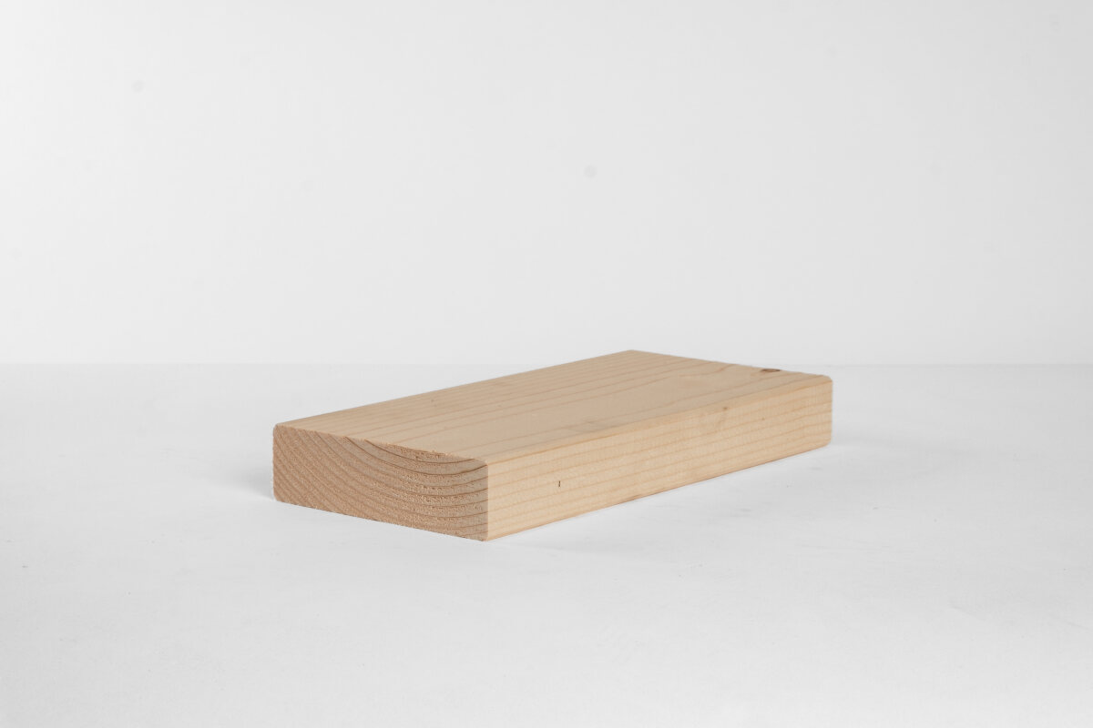 Aus Fichte-/Tanne-Klotzware parallel und rechtwinklig geschnittene Bretter.