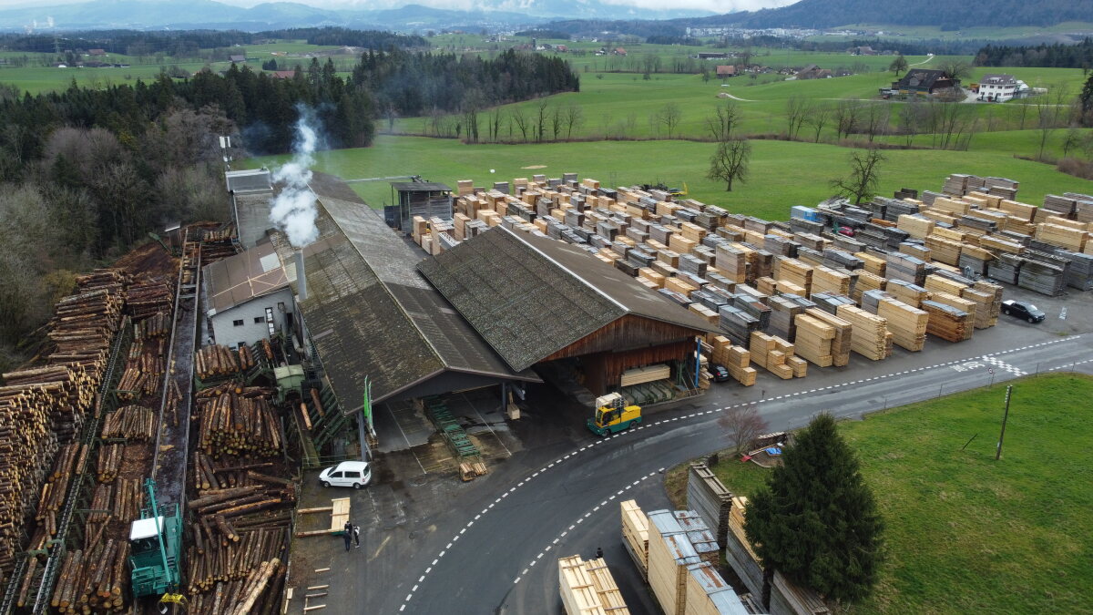 Einblick in das Areal von Dahinden Sägewerk AG, hier beginnt der Weg vom Rundholz zum Schnittholz.